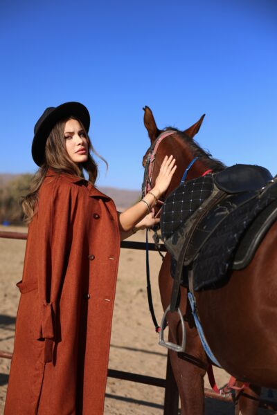 Şıklığı ve konforu bir arada sunan bu camel trençkot, oversize kesimiyle rahat bir kullanım sağlar. Sıcak camel rengi, kış aylarında zarif bir dokunuş katarken, bel kemeri ve düğme detaylarıyla şıklığınızı tamamlar. Her tarza uyum sağlayacak bu trençkot, hem günlük hem de özel günlerde tercih edebileceğiniz ideal bir parçadır.
