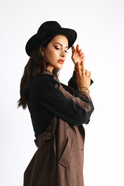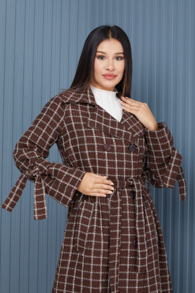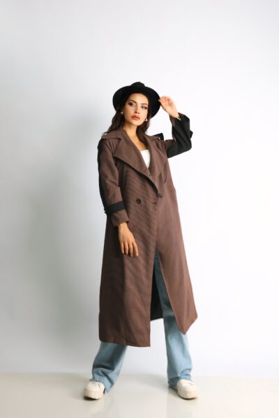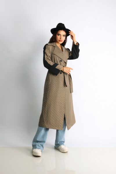 Zarif ve klasik bir görünüm sunan bu oversize trençkot, kahve rengindeki kazayağı deseniyle şıklığınızı artırır. Rahat kesimi ve kaliteli kumaşı, konforu ön planda tutar. Bel kemeri ve düğme detaylarıyla hem şıklığınızı hem de stilinizi tamamlayarak çeşitli kombinlerle uyum sağlar.