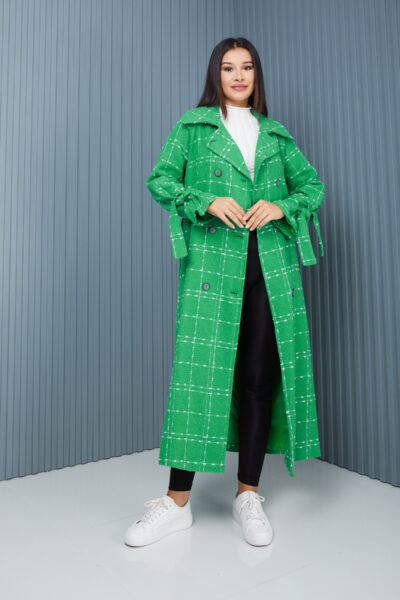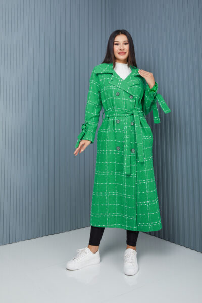 Creed Tasarım Kadın Trençkot Beyaz Yeşil 7073