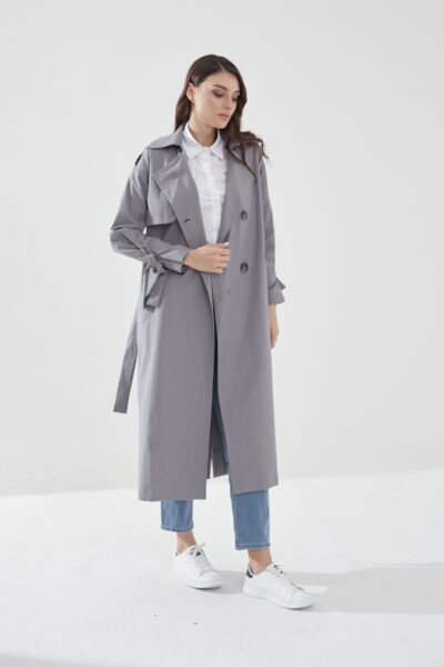 Modern ve şık bir görünüm sunan bu antrasit trençkot, oversize kesimiyle rahatlığı ön planda tutar. Klasik detaylar ve kaliteli kumaşı, her mevsimde stilinizi tamamlayacak zarif bir seçenek sunar. Bel kemeriyle fit bir siluet yaratırken, zarif rengi ile çeşitli kombinlere uyum sağlar.