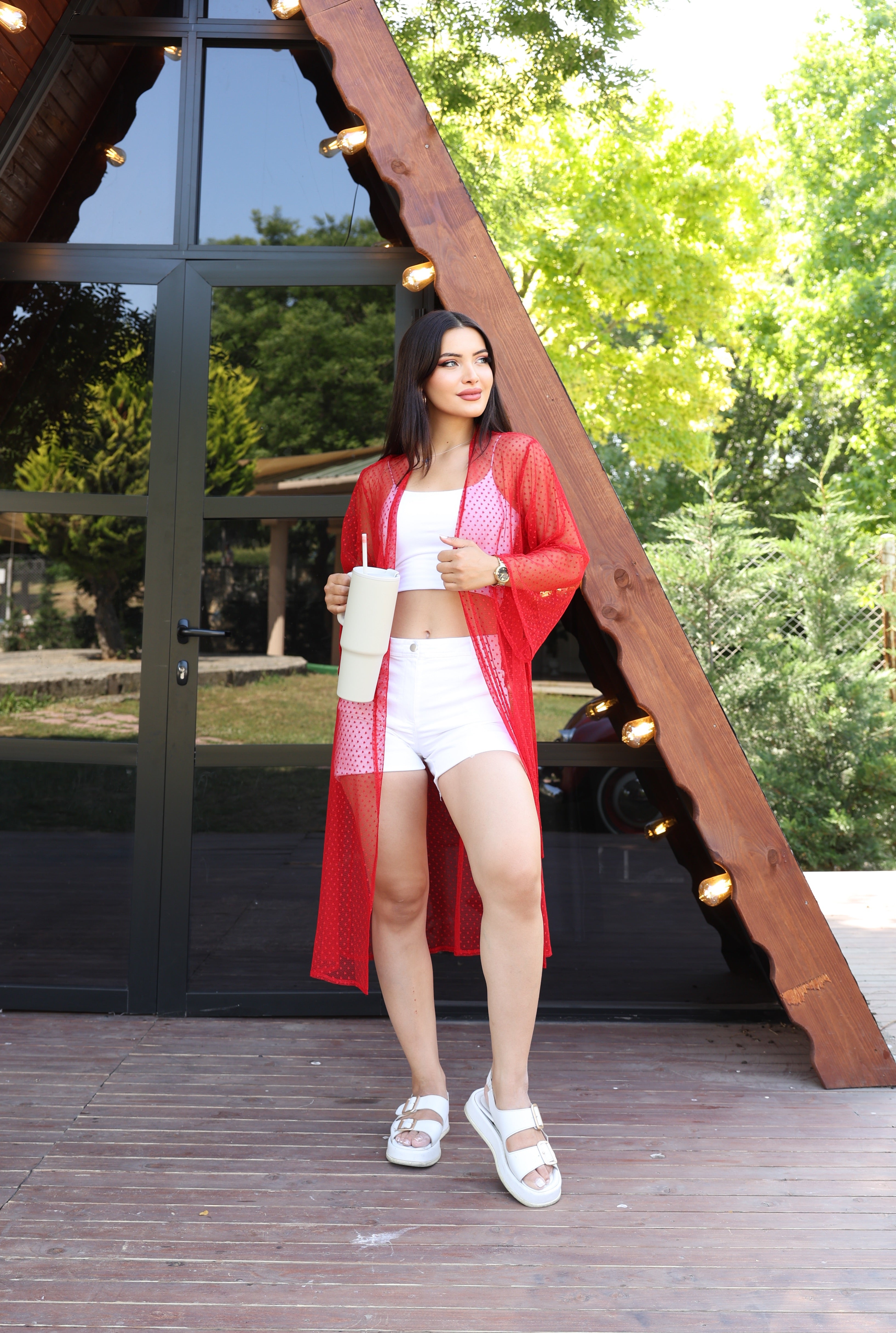 Puantiye Desenli Şeffaf Yazlık Kimono – Hafif, Şık ve Trend Tasarım
