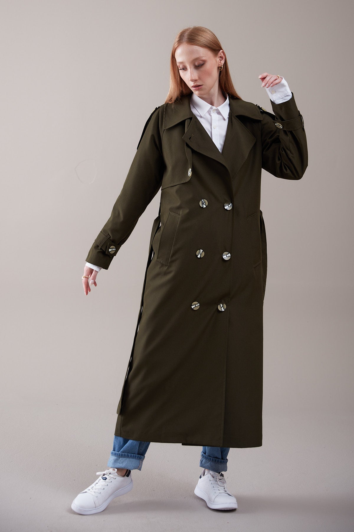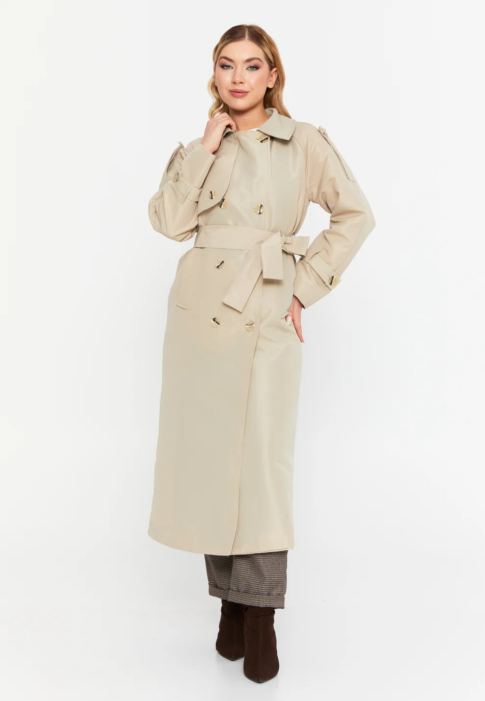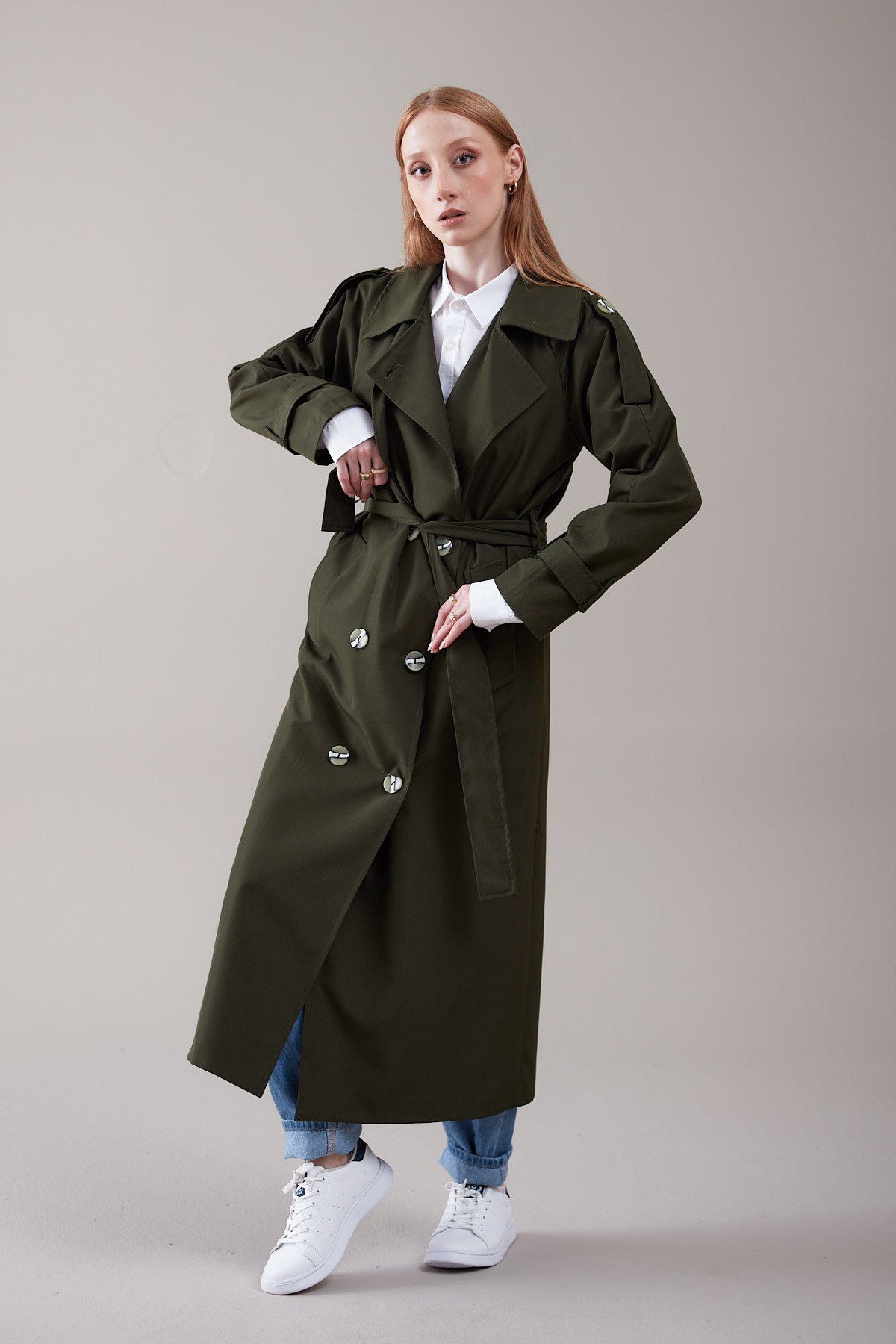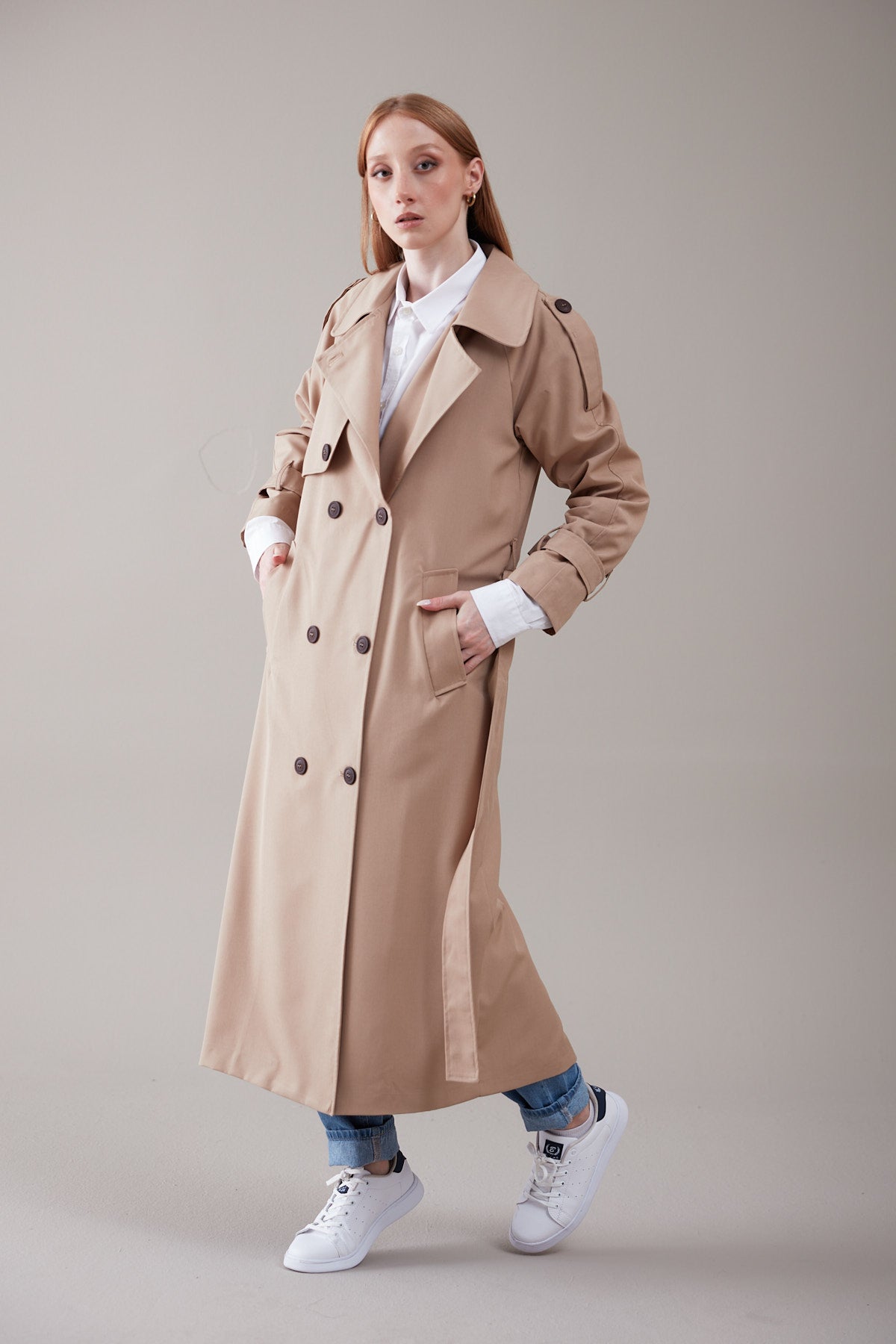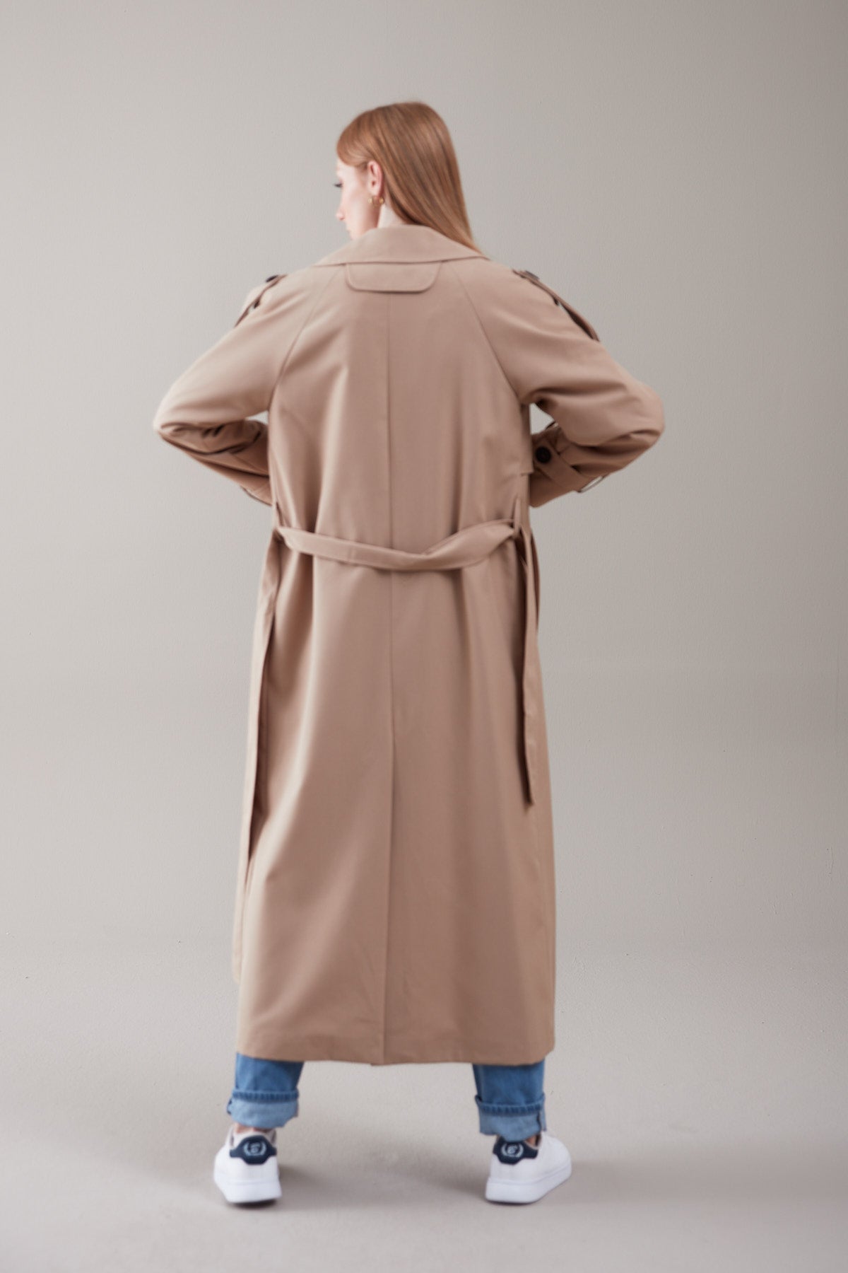 Trençkot Oversize Kol Detaylı Astarlı Geniş Kesim Momente