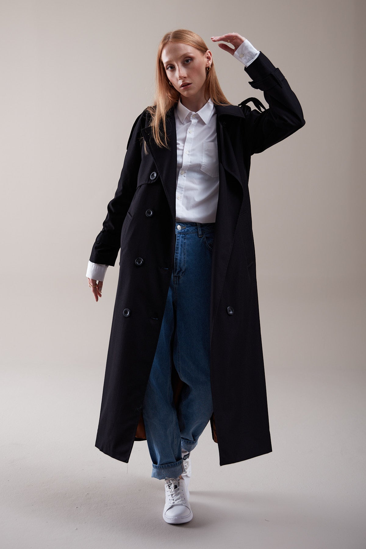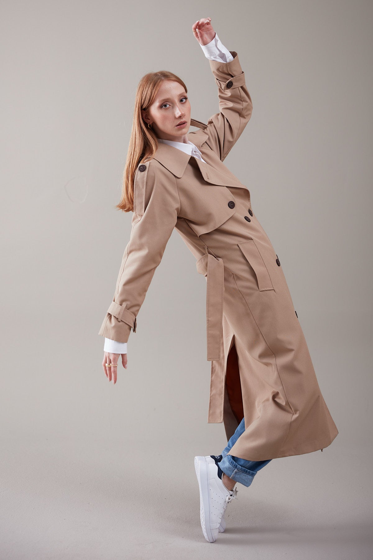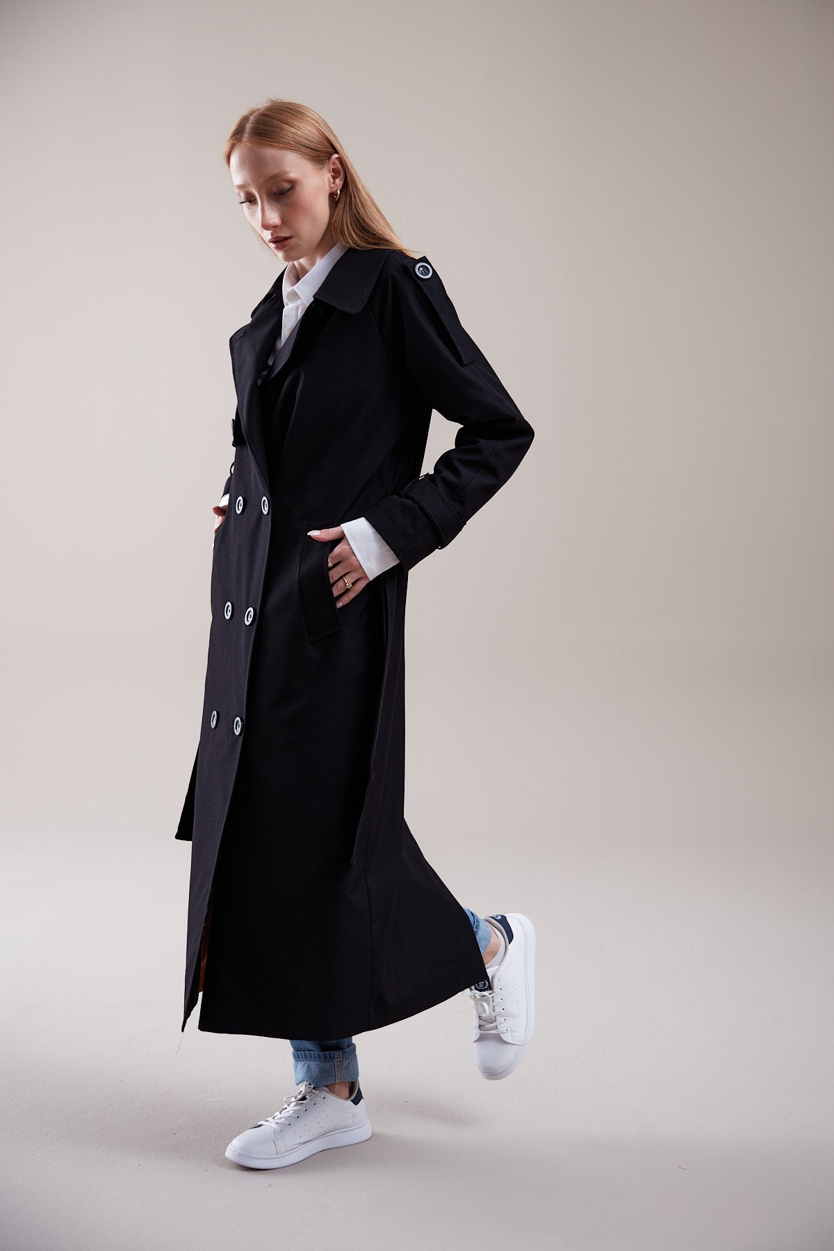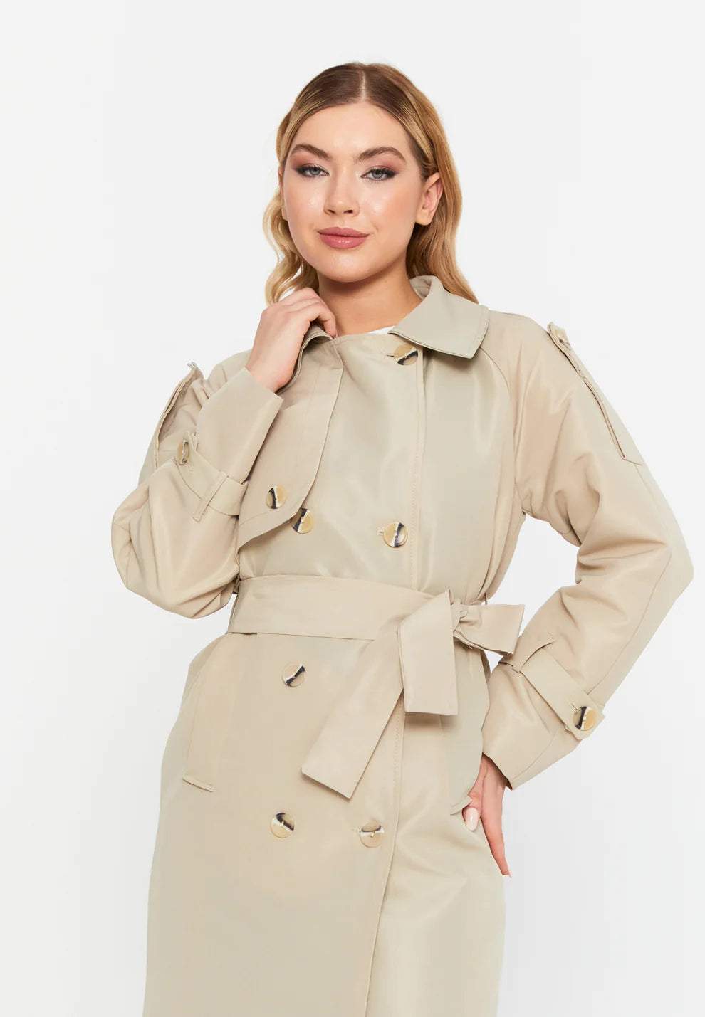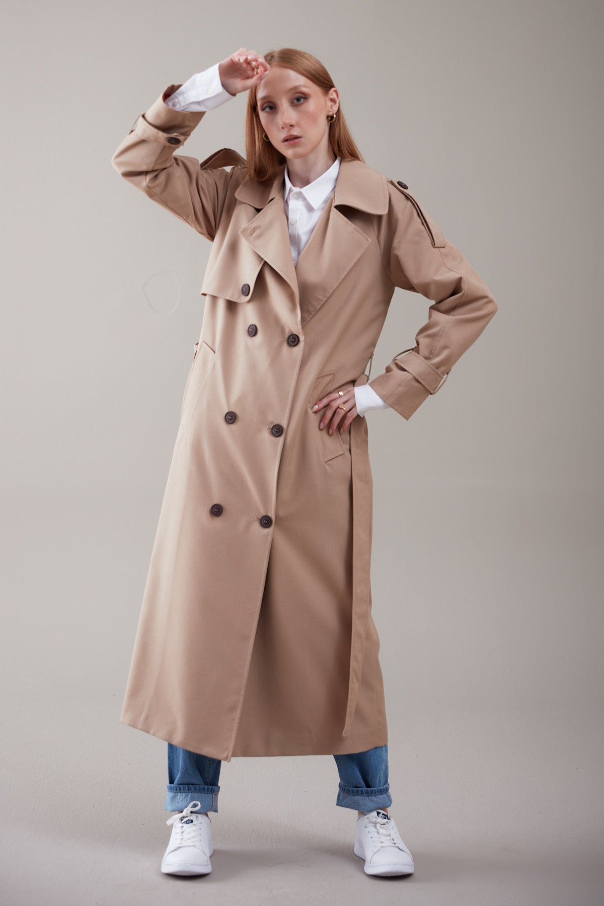 Trençkot Oversize Kol Detaylı Astarlı Geniş Kesim Momente