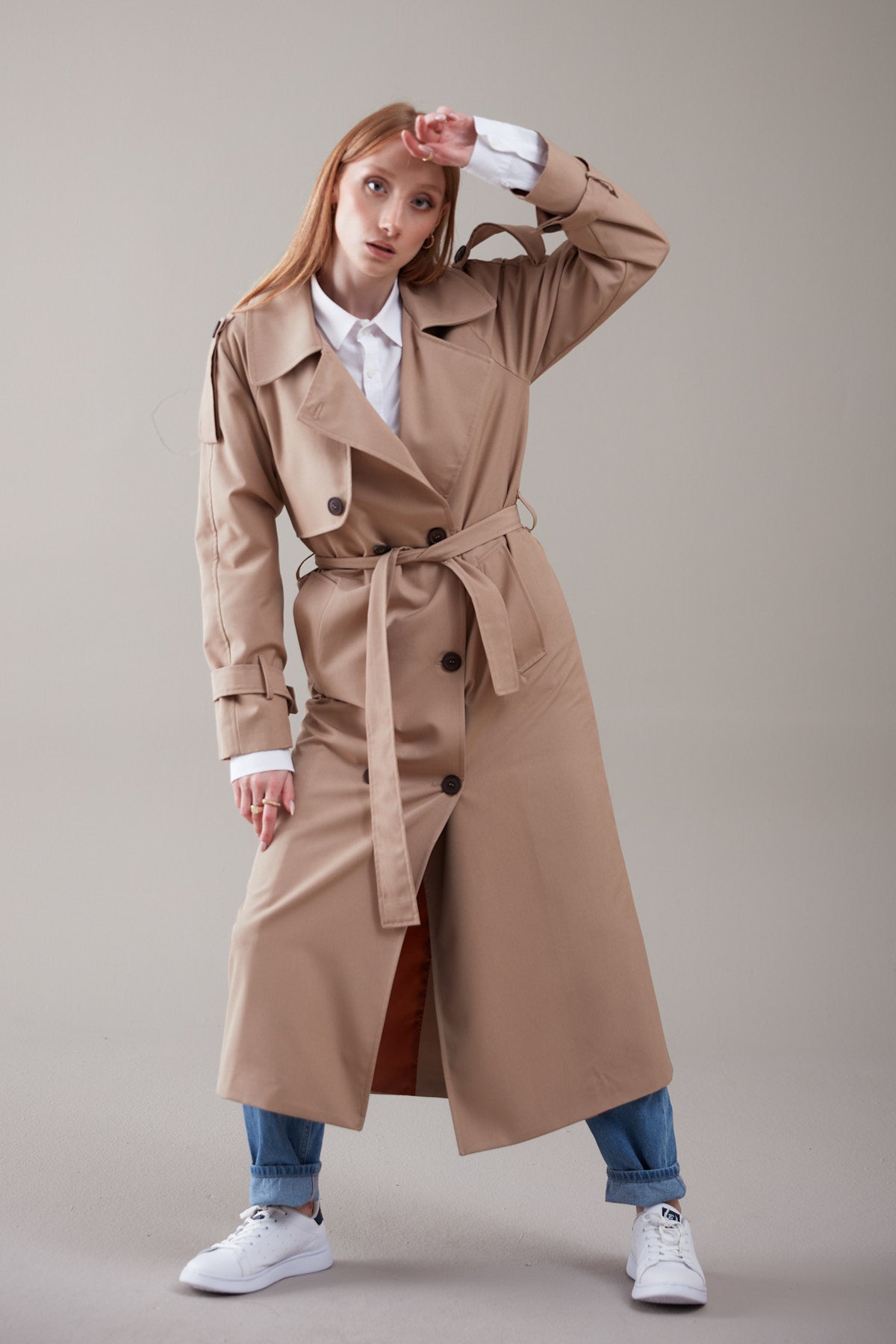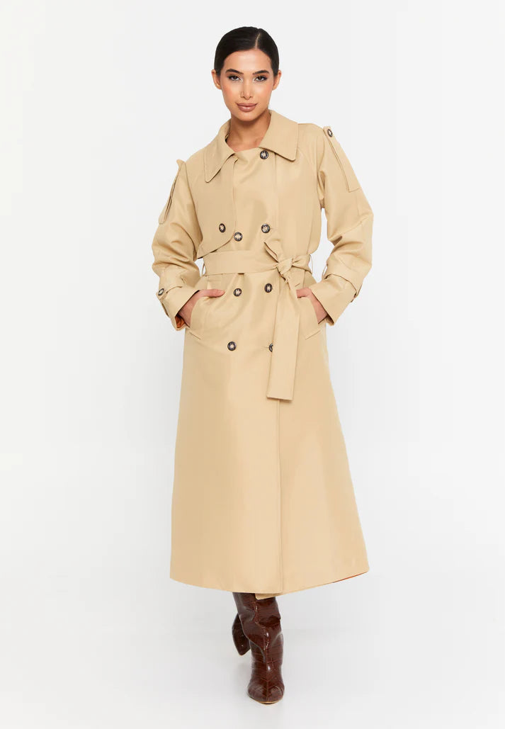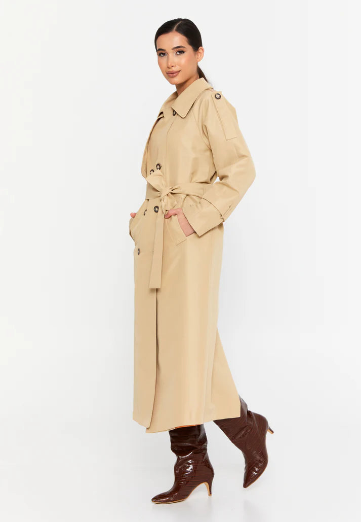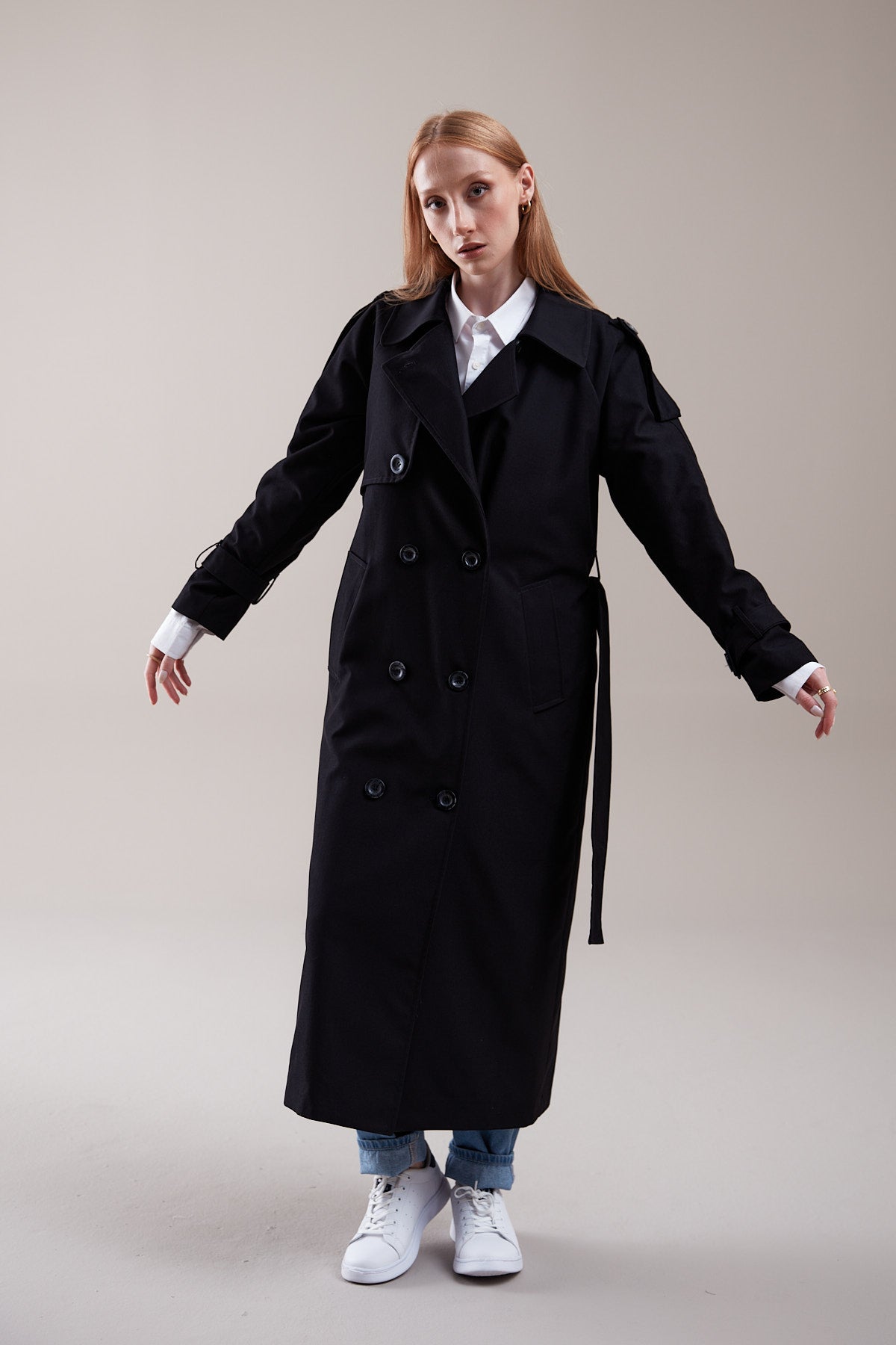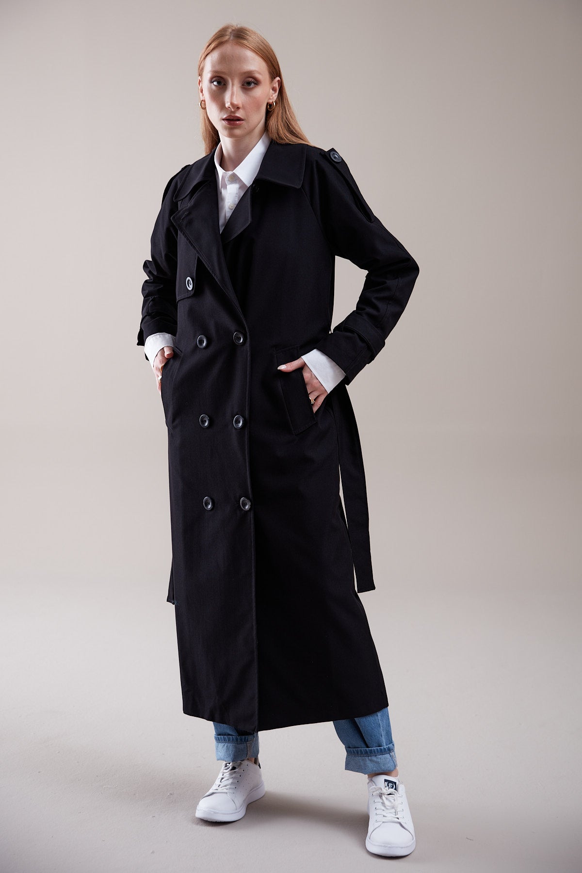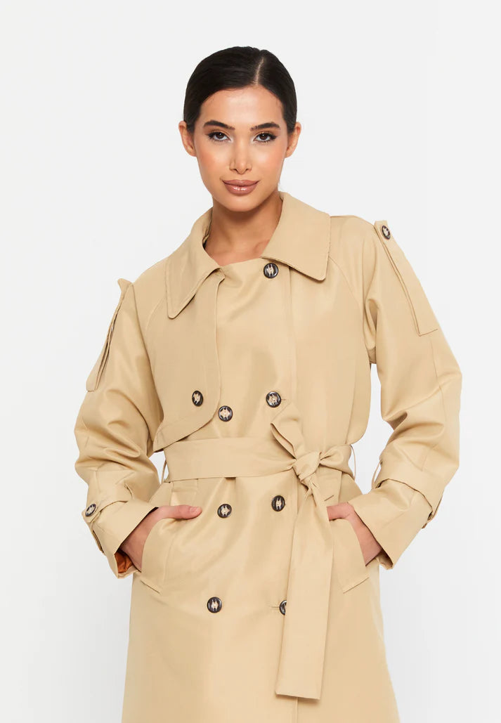 Trençkot Oversize Kol Detaylı Astarlı Geniş Kesim Momente